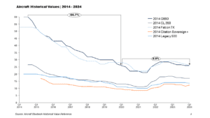 During COVID, the perceived health exposure from flying commercial brought new entrants to business aviation; demand increased during a time of tightening supply, and as a result – values jumped at an unprecedented rate. As seen below, depreciation turned into short-term appreciation.