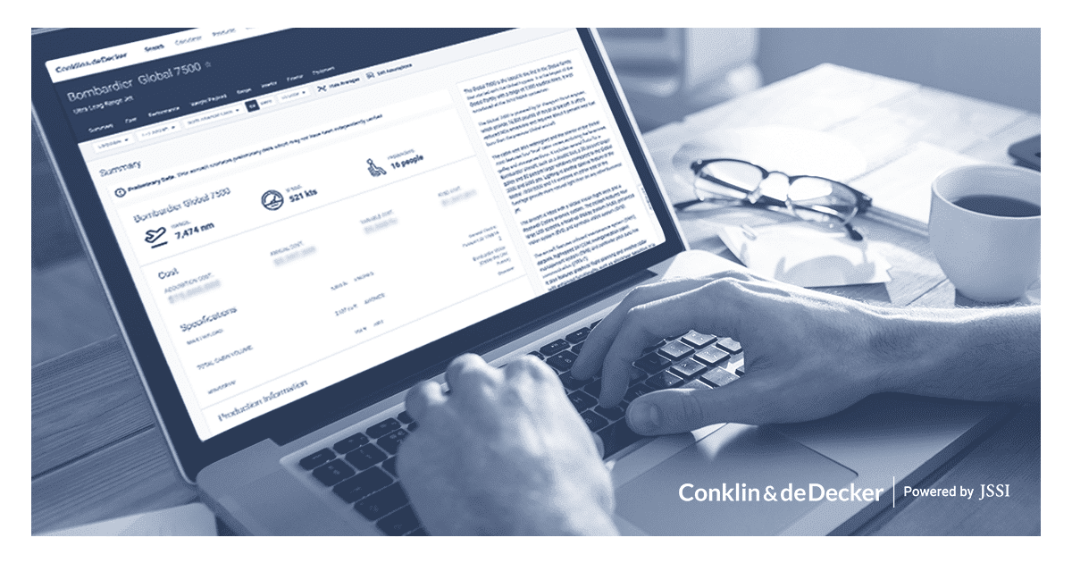 Conklin & de Decker joined the JSSI portfolio of companies in 2018 and is committed to combining decades of data and expertise to give increased transparency to those considering their aircraft purchase. By continually enhancing the aircraft data in the Conklin & de Decker Report, customers have immediate access to the most accurate information available to support informed ownership and operating decisions.